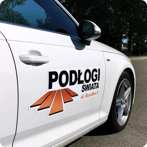 Wyceń i zamów magnesy reklamowe na samochód. Drukowane na folii magnetycznej, w dowolnym kształcie i rozmiarze.